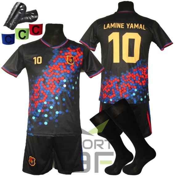 Strój piłkarski dla dzieci Lamine Yamal – komplet (koszulka + spodenki + getry) + wybór dodatku