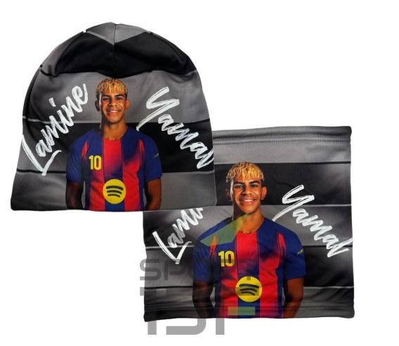 Lamine YAMAL Barcelona szara czapka i komin ocieplone polarem - komplet BP